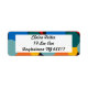 Estas etiquetas de dirección devueltas tienen un diseño Bauhaus de formas aleatorias en azul, verde azulado, amarillo, rojo y naranja.