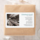 Una plantilla de etiqueta comercial con una máscara de imagen cuadrada. Con una atractiva foto o imagen. La imagen también se puede reemplazar con su propia imagen. El texto se presenta de forma similar a una tarjeta de visita con todos los datos de contacto pertinentes. Introduzca sus datos al personalizar. O puede ser más personalizado. Otras variaciones de este diseño también están disponibles.