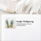 Etiquetas de direcciones con una fotografía con un par de piñas sentadas en una playa de arena.