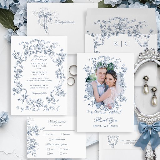 Classic French Blue Flowers & Ribbons WeddingDiseñado por Tanya G.