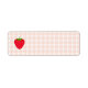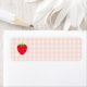 Bonito diseño de fresa rojo brillante, con una tapa verde y un fondo de rayo de gingham rosa claro.