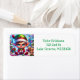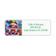 Adorable elfo gruñón haciendo juguetes en un día de Navidades nevados. Añade algo de humor a tu temporada de vacaciones con este lindo cangrejo sacando etiquetas de la dirección de retorno de los elfos.