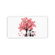Gatos atómicos enamorados; personalizados con iniciales, árboles con corazones rojos en lugar de hojas. Símbolos de amor.