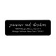 Etiqueta moderna de la dirección de retorno en negro con un diseño mínimo con sus nombres y dirección de retorno en una combinación de fuentes sans serif simples y un guión elegante. Estas etiquetas de dirección de retorno de moda son excelentes para invitaciones de boda, papelería personal o de negocios.