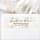 Un delicado trasfondo de puntos de confeti caídos en oro falso da la ilusión de brillar en esta etiqueta de dirección de retorno. Su nombre se muestra elegantemente en un tipo de letra de script encima de su dirección. Arte y diseño © 1201AM Design Studio | www.1201am.com