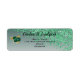 Una etiqueta elegante con brillo verde, hojas doradas y rosas verdes.