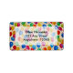 Etiqueta de dirección de 2"l x 3.75"w con una imagen vintage de un surtido de globos arcoiris atados con cintas coordinadoras sobre el bronceado y un overlay transparente blanco con una dirección de personalizable. Ver confeti, caja de favores, bolsas de regalo y papel de envoltura. Ver la colección completa de la etiqueta de cumpleaños en INVITES | Sección Pegatinas y etiquetas.