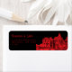 These return address stickers feature an eerie illustration of a castle, which you can replace with an image of your destination wedding venue. Gothic serif lettering lays out the couple's names and address, in red on a black background.