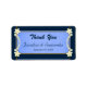 © Sunny Mars Designs. Rústico Boda Floral Azul Azul Gracias a Favor Etiquetas - Personalizable medio personalizado formal rintage azul elegante etiquetas de la boda con borde de cinta azul oscuro, flores blancas modernas bonito contra fondo azul de papel pergamino antiguo.