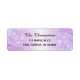 Etiquetas simples de color púrpura y blanco para las direcciones de retorno.