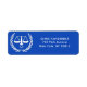 Anuncios creativos de graduación de facultades de derecho, invitaciones a fiestas y notas de agradecimiento a los alumnos que regresan con etiquetas de direcciones con divertidos diseños de escalas de justicia.