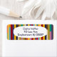 Estas etiquetas de dirección de retorno tienen un diseño geométrico de franjas coloridas que corren verticalmente.