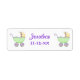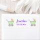 Utilice estas etiquetas de pegatina para anunciar a su chica o niño recién nacido, personalizado con el nombre y la fecha de nacimiento del bebé. Encontrarás muchos usos para estos pegatinas en sobres, tarjetas de agradecimiento y más! Estas etiquetas incluyen un carrito de bebé de color amarillo y verde a cada lado del área de personalización. El nombre y la fecha del personalizable se centran en un elegante y moderno fondo blanco. Personalizable completo. El carruaje está acentuado con colores malva lavanda. Esto se coordina con otros productos para bebés en esta tienda. El buggy buggy buggy es un arte original elegante, bonito y llamativo de Phyllis Dobbs.
