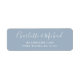Elegante dirección de respuesta dusty blue personalizada con nombres y detalles de dirección en estilo de firma. Diseñado por Thisisnotme©