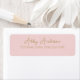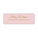 Sencilla, moderna, minimalista y muy elegante tipografía de escritura dorada sobre etiquetas de dirección de retorno de fondo rosa, Moda, personalizado hecha y personalizada con su nombre y dirección.
