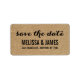 Boda aséptica ruidosa beige Guardar la etiqueta de dirección de fecha. Diseño de Elke Clarke© para MonogramGallery impreso por Zazzle. Envíe sus tarjetas de fecha guardadas a sus amigos y familiares usando esta etiqueta simple y bonita con las palabras "guardar la fecha" escritas en un texto de escritura tipográfica de escritura a mano negra. Efecto fotográfico impreso de fondo de burlap beige. Hay otros colores disponibles.