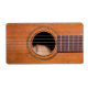 Foto de guitarra detallada de cuerdas y agujero de sonido en una guitarra acústica usada.