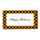 Una linda etiqueta personalizado con puntos negros de polka grandes y pequeños en naranja con Feliz Halloween en un guión gruñido. Haga clic en Personalizar para agregar su nombre o mensaje, cambiar los colores de fondo y más.