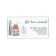 Nuevas etiquetas de dirección con dibujo de dibujo de dibujos de doodle de una pequeña casa linda en el bosque. El texto "hemos movido" se indica en tipografía clara o puede editarlo a "He movido" o "Mi nueva dirección", por ejemplo. La plantilla también está preparada para que añada tu nombre y dirección en la tipografía gris oscuro moderna.