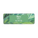 Estas etiquetas de direcciones de retorno están adornadas con grandes hojas tropicales rayadas verdes. Este hermoso follaje común en los trópicos se superpone creando capas de hojas verdes y amarillas. Las rayas que se ven en las hojas crean un patrón geométrico abstracto en esta etiqueta y soportan un rectángulo verde y su nombre y dirección.