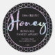 Moda moderna holográfica y diseño de panal negro miel, etiqueta colmenar.