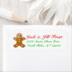 Hombre de pan de jengibre con etiquetas de botón verde y naranja.