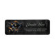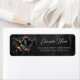 Etiqueta Huesos y magia, esqueleto con dados místicos.