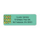 Estas etiquetas de dirección de retorno tienen un diseño moderno de ovalos verdes de mediados de siglo con óvalos y círculos en ellas que las hacen parecer huevos en colores retro de rojo, amarillo, azul, verde, marrón y naranja en un campo de azul claro.