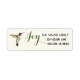 Etiqueta de la dirección de retorno de Hummingbird que muestra un colibrí gavillado de rubí sobre un elegante fondo de color crema y la palabra JOY. Personalízalo añadiendo tu nombre y dirección. El estilo del tipo de letra, el tamaño del tipo de letra y el color pueden cambiarse haciendo clic en "personalizar más adelante".