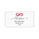 Símbolo infinito de flujo continuo de vino tinto vertiendo en vidrio de vidrio sobre fondo blanco.
