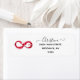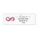 Símbolo infinito de flujo continuo de vino tinto vertiendo en vidrio de vidrio sobre fondo blanco.
