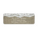 Etiquetas de invitación de boda rústica simple de arpillera y encaje