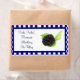 Esta etiqueta de bonito es perfecta para su uso en sus enlatados o frascos caseros personalizados. La etiqueta está delineada en un borde marcado en blanco y azul. El centro es blanco, con una morera en el lado derecho. Todo el texto es personalizable.