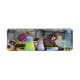 Laboratorio de Ciencia con experimentos que burbujean y se filman en el escritorio de madera. Laboratorio de un científico loco.
