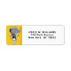 Etiquetas de retorno de lacrosse únicas diseñadas para personalizar fácilmente para los anuncios de graduación del jugador de lacrosse, tarjetas de agradecimiento e invitaciones de fiesta con palos laxos sobre fondo amarillo.