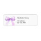 A lavender colored bow. Personalize and add your name and address. Black letters.
