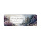 Add a touch of storybook magic to your correspondence with this breathtaking fairytale landscape. The design features a lush foreground of vibrant purple peony and delicate white botanical clusters, leading the eye toward a majestic blue-roofed stone castle nestled in a misty mountain forest by a tranquil lake. A unique, shimmering gold astrological detail graces the top corner, while a sophisticated triple-line gold frame provides a clear, high-contrast window for your information against the atmospheric, soft-focus sky. This is a return address label. It is the premier choice for an enchanted forest wedding, a whimsical fairytale ceremony, or a sophisticated storybook gala held in a historic manor or woodland resort. These labels provide a polished, artistic finish to your fantasy-themed stationery, thank-you notes, or luxury holiday mailings, ensuring your envelopes stand out with a sense of poetic wonder and refined romance from the moment they are received.