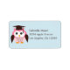 Etiqueta de dirección para la graduación de los niños con una lechuza rosa con una gorra de graduación con un fondo azul. El color puede cambiarse mediante la herramienta de personalización. Gráficos ©Babystar Design.
