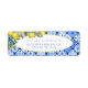 Limones acuarela floral italiano baldosas azules etiqueta de dirección de devolución.