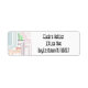 Estas etiquetas de dirección devueltas tienen un diseño art deco de líneas en morado, rosa, naranja y azul.