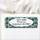 Estas etiquetas de dirección devueltas tienen un diseño moderno de mediados de siglo, compuesto por cinco líneas negras y dos rectángulos turquesa repetidos a lo largo del diseño.