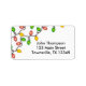 Los Navidades brillantes se iluminan con luz verde, roja y amarilla en la esquina izquierda. Una etiqueta de dirección perfecta para las vacaciones.
