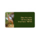 2"l x 3.75"w etiqueta de dirección verde de una jirafa masái alimentándose de un árbol.