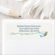 Una colorida cometa de macao con cintas flotando en el cielo desde sus alas. Utilice la opción personalizar para editar el cuadro de texto para que las etiquetas impriman correctamente su nombre y dirección. Derechos reservados ©Kimberly J Tilley.