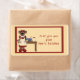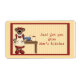 Una bonita etiqueta para agregar a tus golosinas caseras incluye un oso de mamá en su cocina con artículos de hornear en fondo rayado amarillo y borde rojo granero. Creado con gráficos de ©http://www.countrylifegraphics.com