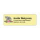 Etiquetas de direcciones con un adorable diseño de acuarela. Madre de oso y bebé Koala. El bebé está a la espalda de mamá. Parado en una rama de árbol. Un ramo de flores de hibisco debajo. Fondo amarillo banana.