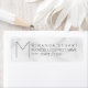 Etiqueta profesional elegante de dirección de devolución de mármol blanco con monograma, nombre y dirección en sans modernos grises estilo de fuente serif sobre fondo de mármol blanco.