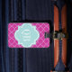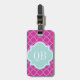 Etiqueta marroquí rosada y blanca elegante del equipaje del enrejado del enrejado con el monograma personalizado. Idea con monograma elegante del regalo para los hombres y las mujeres que viajan. Accesorio moderno lindo del viaje para los bolsos elegantes y las maletas. Color de fondo adaptable. Añada las iniciales conocidas.