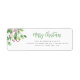 Caligrafía minimalista moderna Etiqueta de la dirección de regreso de Feliz Navidad con hojas de verdor de berry.