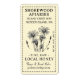 Esta etiqueta de miel con timbres es de 2 x 3,75" cuando se solicita en la etiqueta de envío o de 1,25 x 2,375" si se solicita en la etiqueta de dirección. El texto gris sobre el fondo amarillo pálido añade un toque anticuado delicado.